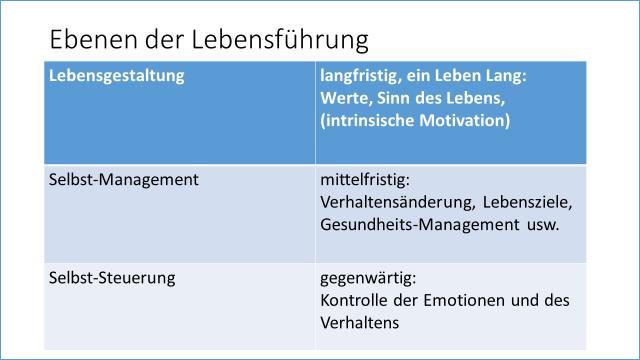 Jetzt geht es um die Fragen der künftigen Lebensführung: Welche Emotionen, Verhaltensweisen und Vorstellungen nehme ich wertschätzend als konstitutiv für meine Persönlichkeit wahr? Welche Emotionen, Verhaltensweisen und Vorstellungen nehme ich als Leid verursachend, also als destruktiv wahr? Wie kann ich zu einem konstruktiven Verhalten gelangen? Diese Fragen kennzeichnen das Feld der Lebenskunst als Persönlichkeitsbildung.